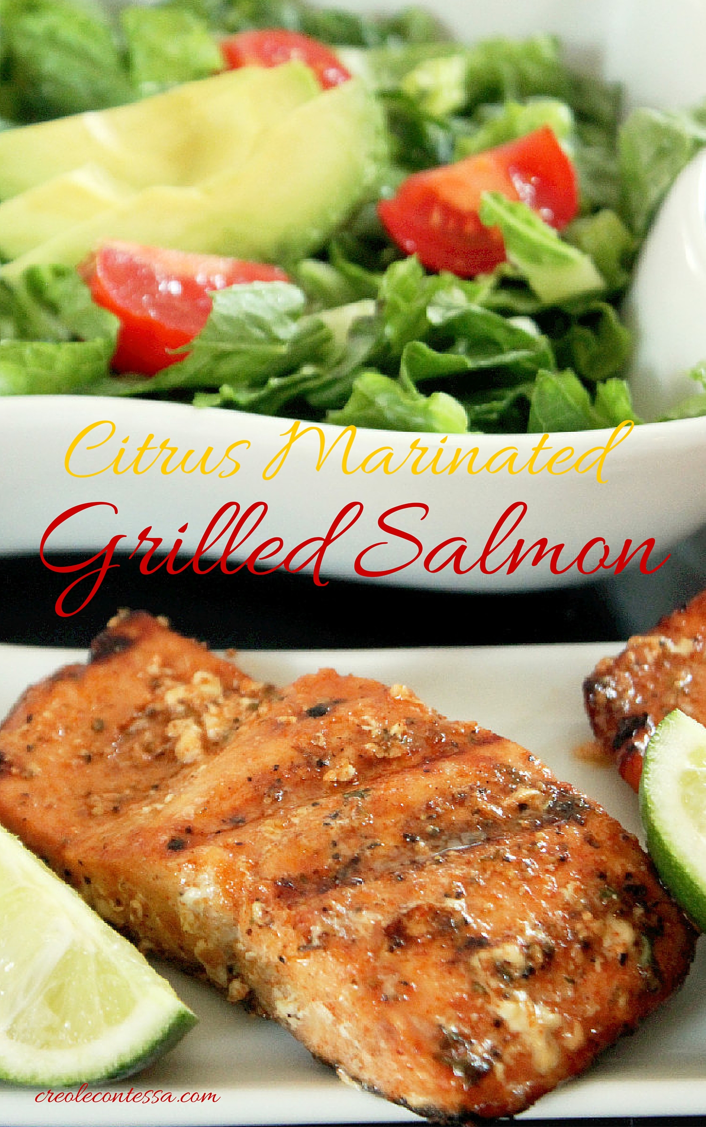 I decided to make Citrus Marinated Grilled Salmon with a simple but tasty Avocado Tomato Salad.