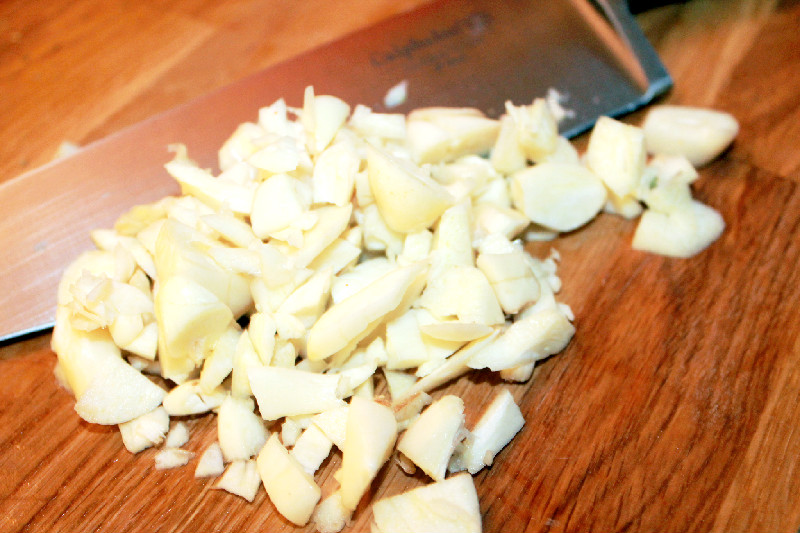 Chop lots of fresh garlic.