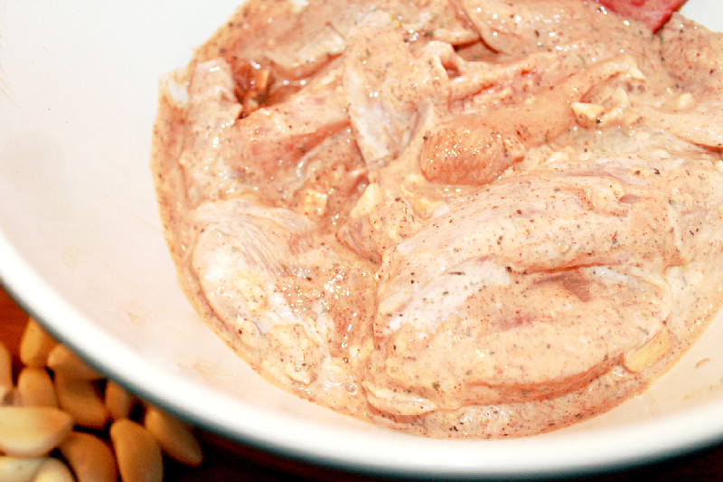 Toss everything in a bowl and marinate all the spices, garlic with Greek yogurt, lemon and extra virgin olive oil.
