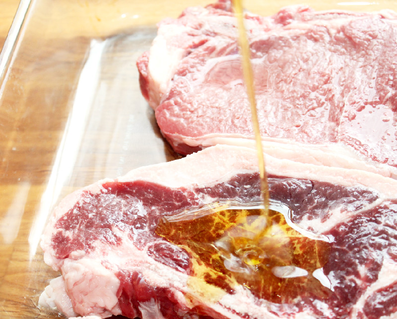 After seasoning steaks, cover with plastic wrap and marinate for 1-2 hours is you have the time. Take steak out of the refrigerator at least 30 minutes prior to cooking.
