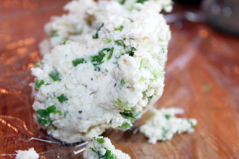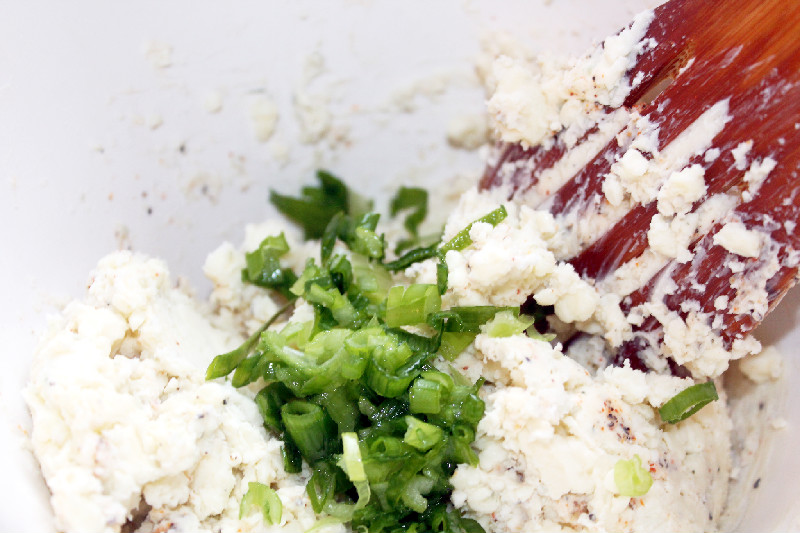 Mix butter and gorgonzola with a little green onion, black pepper and creole seasonings, mix well.