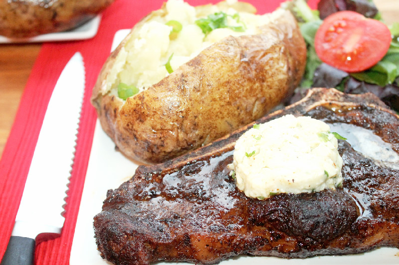 Start with good quality steaks with as much marbling that you can find. Fat is flavor and that is what your looking for in a good steak. Rub olive oil into steak prior to adding seasoning.