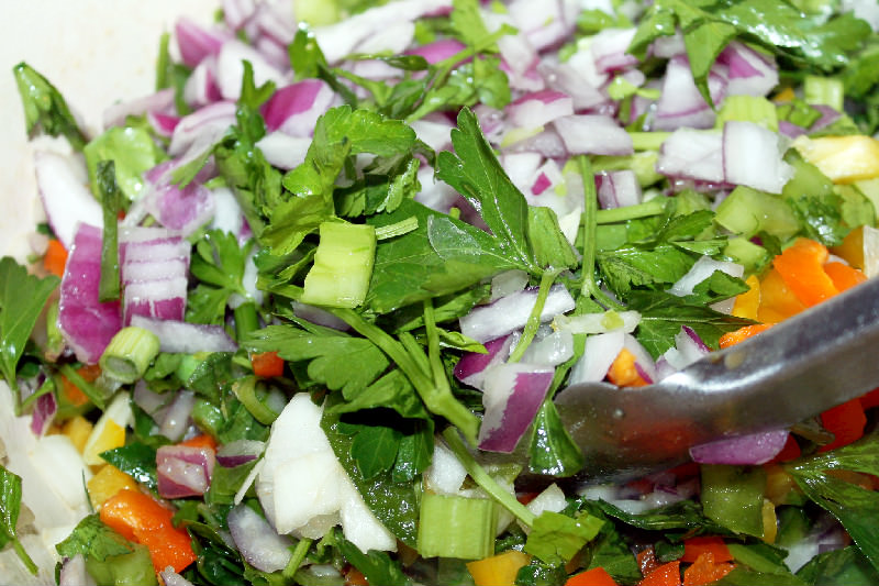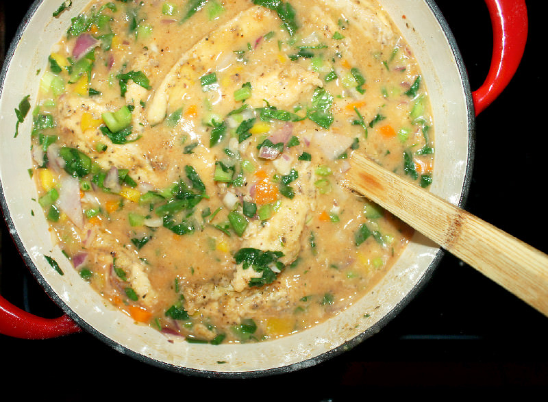 I make a brown roux, saute all my vegetables in the roux and then add my chicken back to the pot. I used an Italian parsley in this dish because I use Italian parsley in everything I cook. I love the flavor of it.
