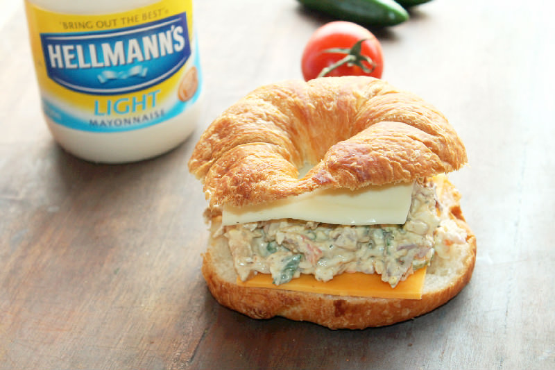 The chicken salad goes together in a matter of minutes, allow it to chill about 30 minutes in the refrigerator if you can wait that long, then assemble the sandwiches.