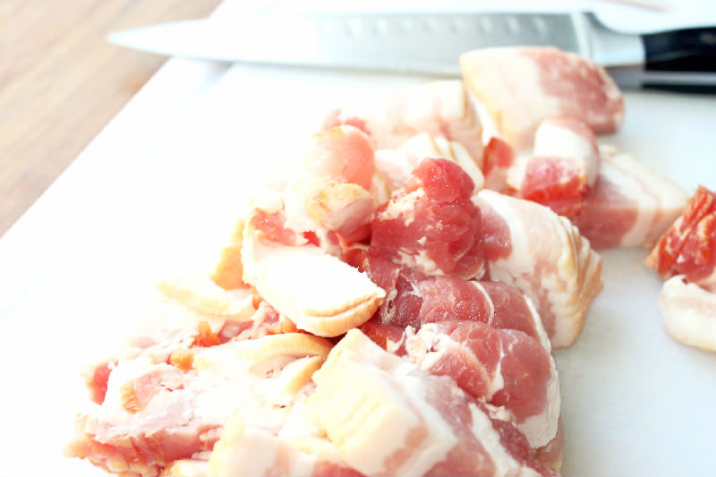 Dice the bacon into about 1/2 inches and use thick cut if you have it.