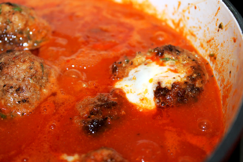 Pepper Jack Cheese Stuffed Meatballs and Tomato Sauce