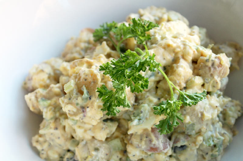 It’s almost officially Summer and I am getting ready to cook up some tasty eats. As you probably already figured out, I love potatoes. I love potato salad even more. You can’t grill without having potato salad as a side dish. This dish is so simple, the key to it is these little baby buttery potatoes that pop in your mouth when you bite into them.
