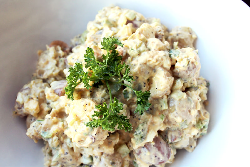 This potato salad is ready in less than 30 minutes. I like to make it the night before I eat it, but I also like to eat it hot.