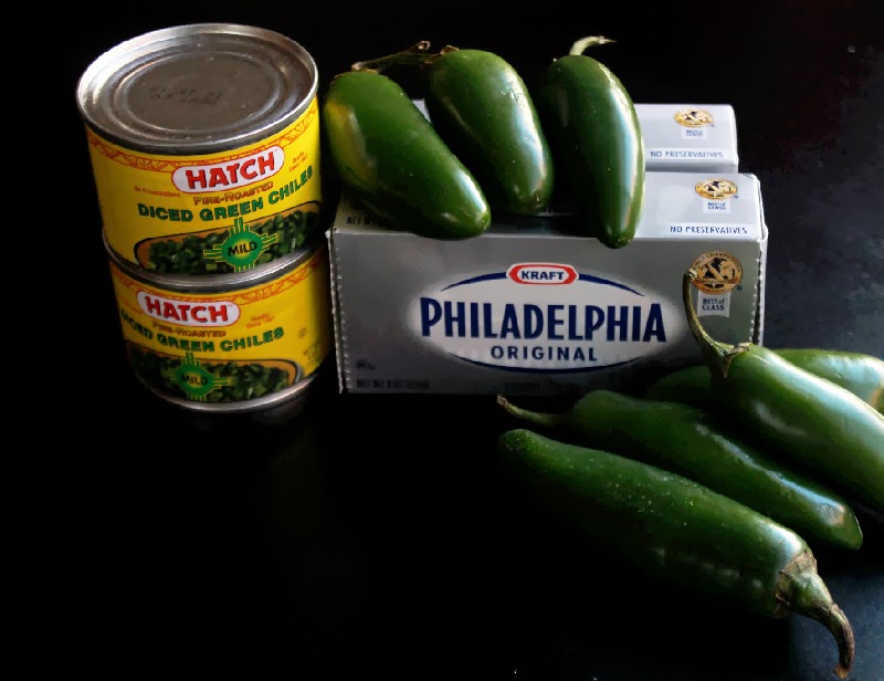 After you smoked the meat, this is a simple, quick dish! You need lots of cream cheese, some jalapenos, and Hatch chiles…can’t find fresh Hatch Chiles so can it is!