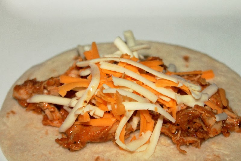 Add about 1 tablespoon of chicken and cheese in the middle of each tortilla shell, roll up and secure with a toothpick, repeat. Heat remaining tortillas and repeat the process.