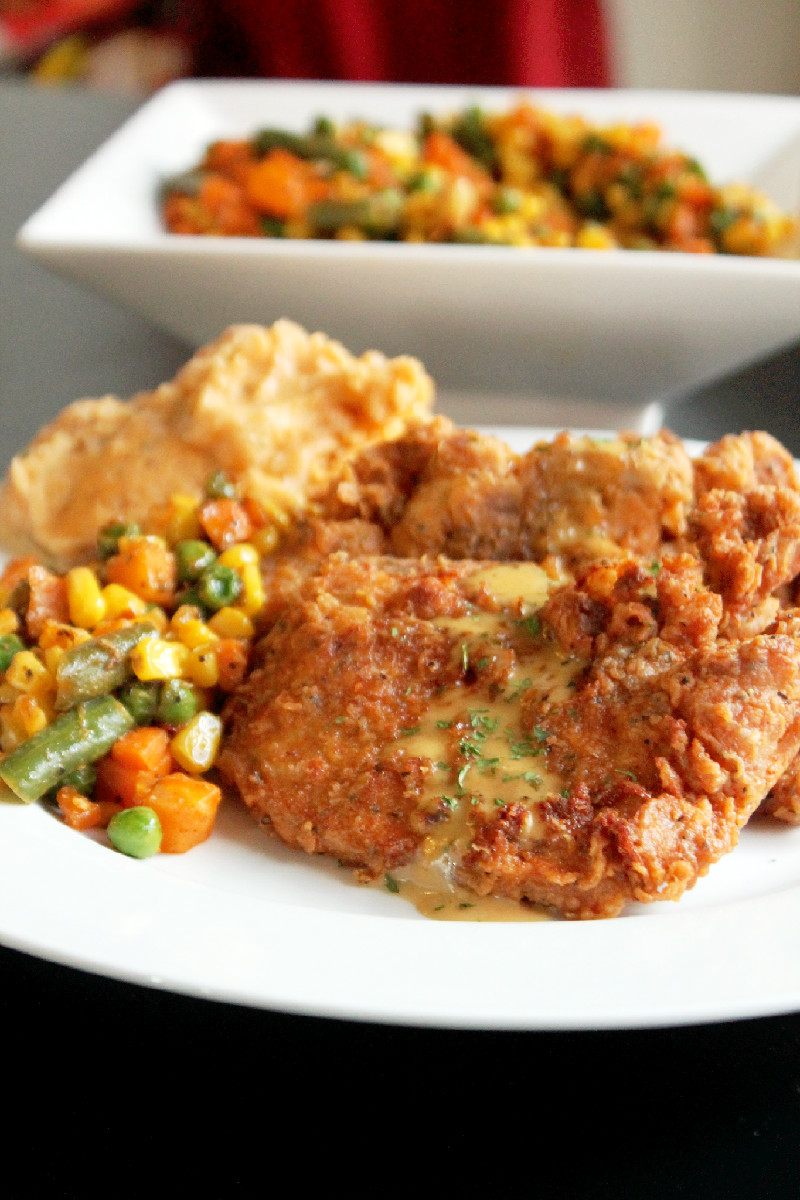 - Remove from grease, drain on paper towel and serve with Chipotle mashed potatoes, and gravy.